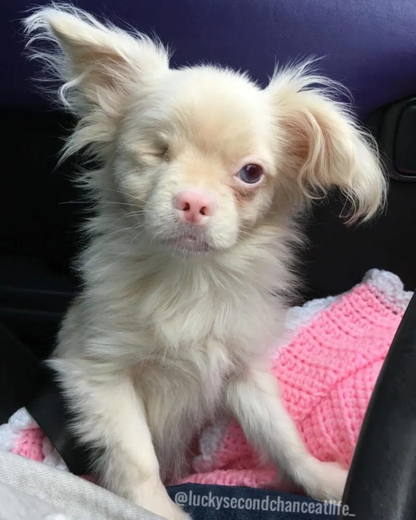 At the time, an entire litter of puppies was struggling to survive beneath their deceased mother, who had tragically bled to death. Among them, Lucky was the weakest—no bigger than a baby hamster.