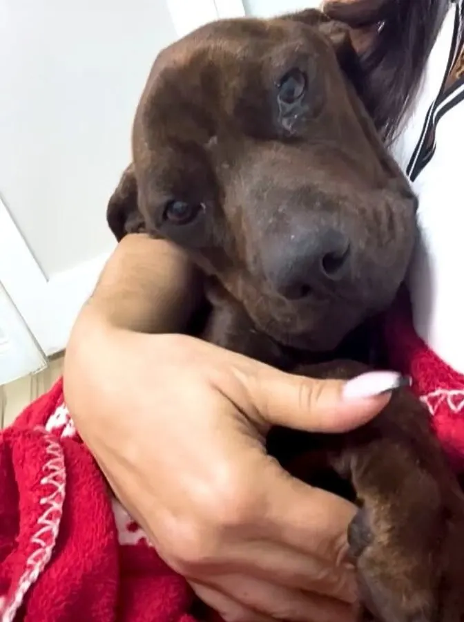 As he gazed up at her with sorrowful eyes, it was as if he was pleading for help. Without hesitation, Johnson gently lifted him, wrapped him in a blanket, and carried him to her car.