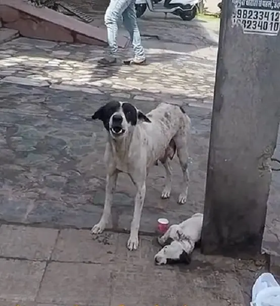 This story is about a devoted mother dog who felt heartbroken when her puppy got hurt. Helpless and scared, she stood by her whimpering baby, unsure of what to do.