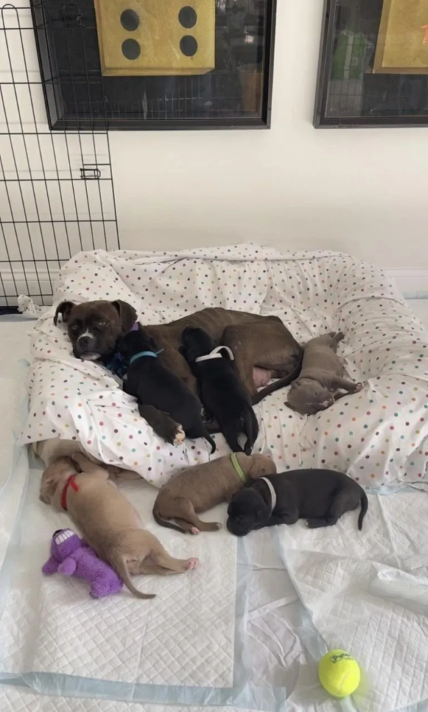 Without hesitation, Donna and her team rushed to the location. After carefully searching the abandoned house, they finally spotted the mother dog curled up in a corner—protecting her six tiny puppies.