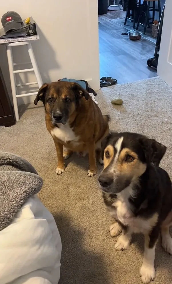 Lena’s other dog, Bear, was a bit wary at first, keeping his distance. But JD’s new human siblings? They jumped straight into play mode!