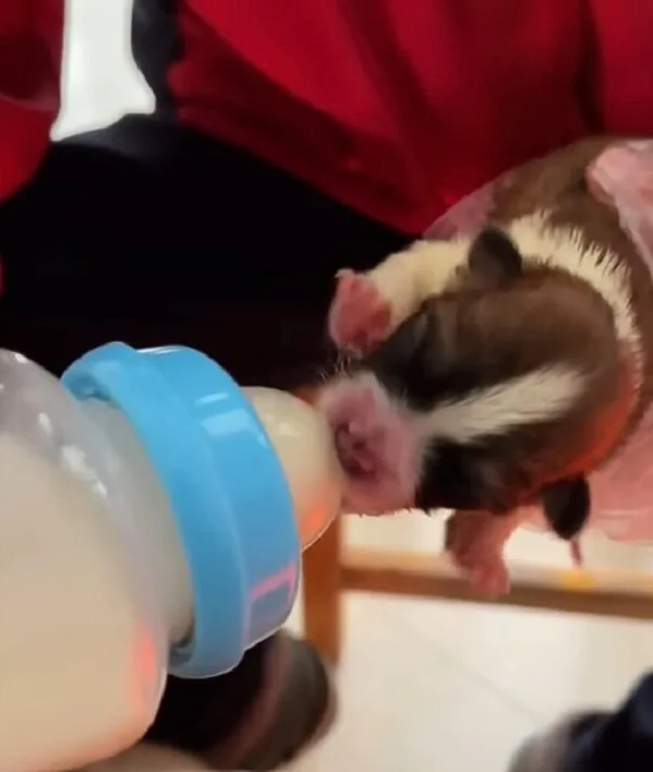 After returning home, the man carefully prepared the milk and bottle-fed the hungry puppies, ensuring they got the nourishment they desperately needed.