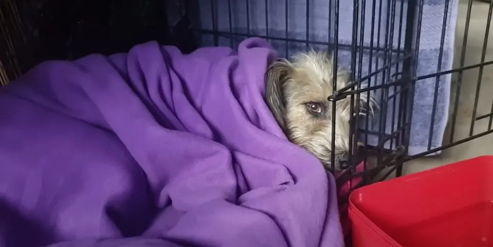 Afterward, the sweet dog was placed in a cozy kennel with a soft blanket, where she slept soundly for the rest of the day.