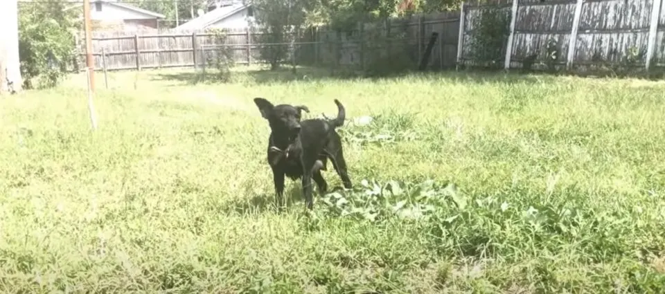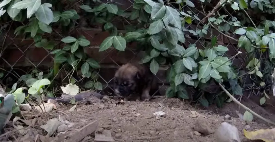 Beneath the leaves, one tiny pup was trapped in a fence, crying out for help, unable to move.