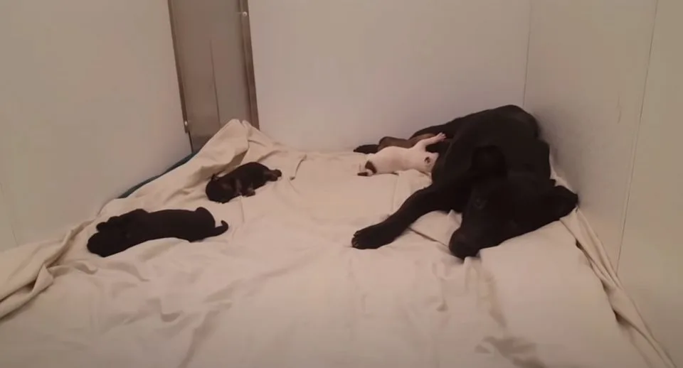 The mama dog and her puppies were settled into a cozy apartment, complete with food, water, and warmth.