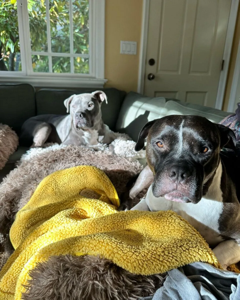 A few months after adopting Bubby, Katharine welcomed another rescue into the family—Simon, a fellow survivor of animal abuse. Having a sibling who truly understood his past was a gift for both Bubby and the entire household.